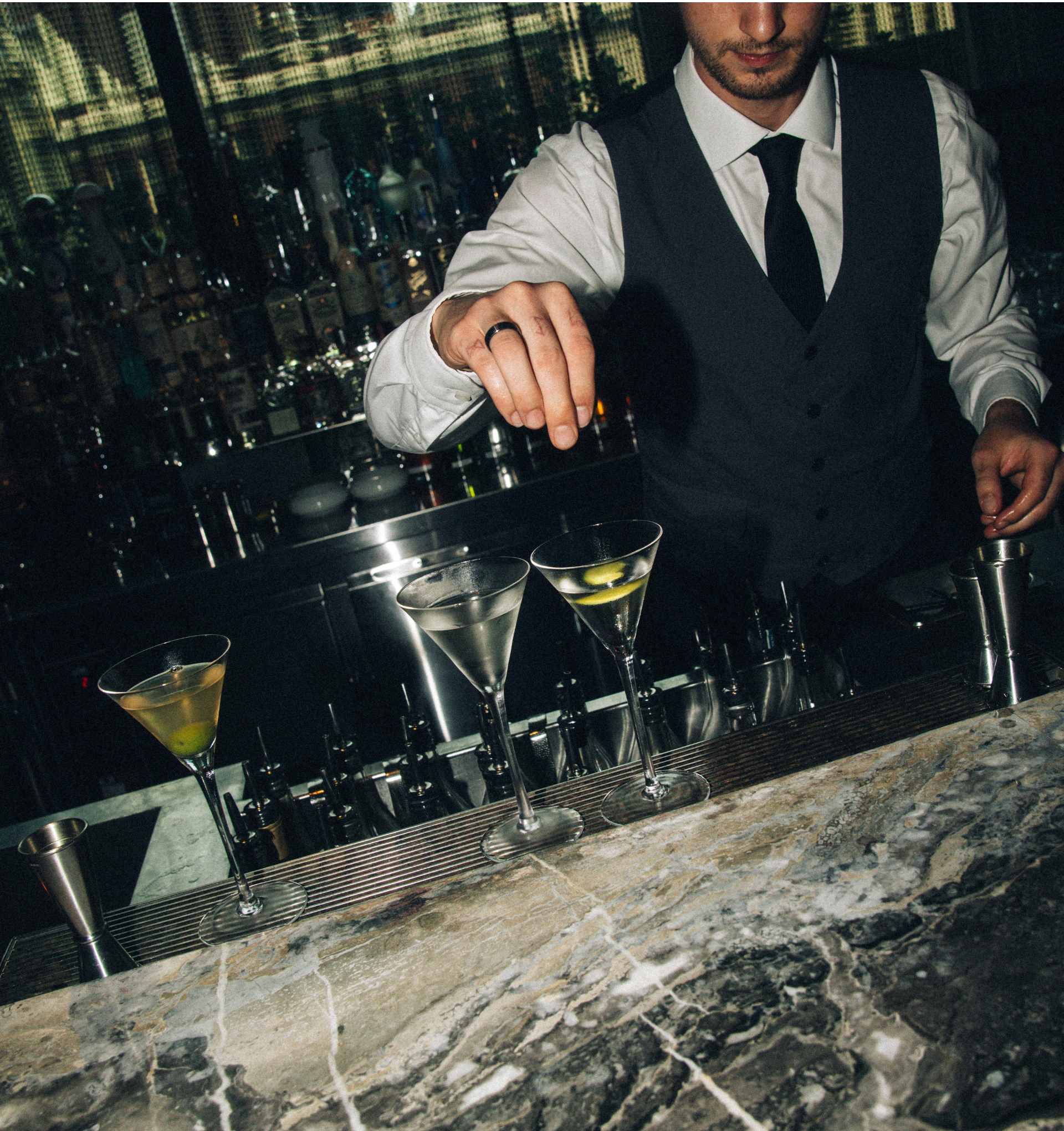 Set between the Society Dining Room and Lillian, our elegant lounge bar is a vision of marble and plush banquettes; an inviting backdrop for pre-dinner drinks, nightcaps and beyond. A smart signature drinks offering includes a notable Martini selection and a vintage cocktail program showcasing spirits dating back as far as the 1950s.
